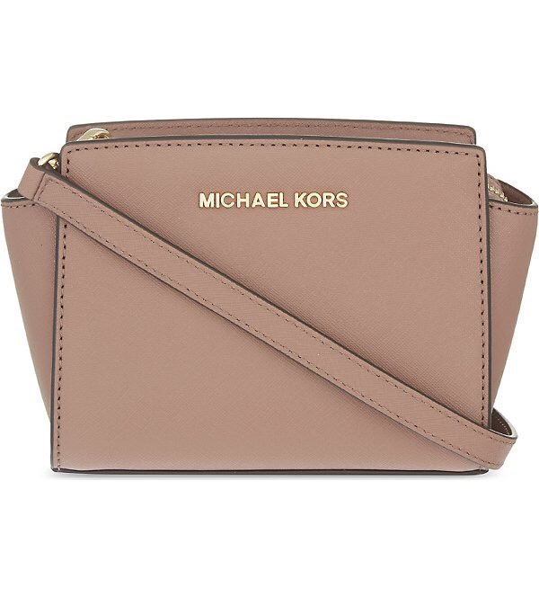 Selma Mini Saffiano Leather Messenger Bag in Dusty Rose