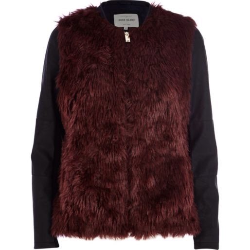 IMG_4801.JPGRiver Island Dark Red Contrast Sleeve Faux Fur Jacket €120.00 Buy Here